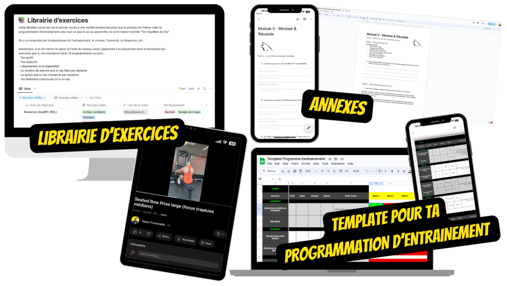 ✅ Une librairie d’exercices avec + de 85 exercices et vidéos.